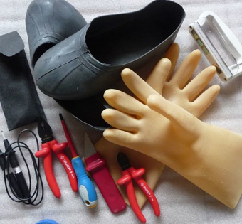 Испытание средств защиты в электроустановках включают в себя: испытание указателей напряжения, заземляющих штанг, диэлектрических лестниц, а также предметов одежды, таких как калоши, боты, перчатки.